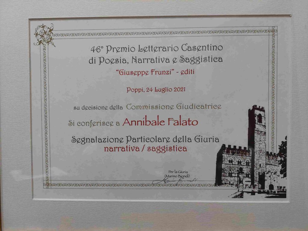 Oltre alla segnalazione della giuria nell'ambito del premio letterario internazionale Casentino, sono stati assegnati all'autore i seguenti ulteriori riconoscimenti letterari: dal concorso letterario internazionale "Le pietre di Anuaria": opera miglior saga e dal concorso internazionale "Città di Cattolica": diploma d'onore per il particolare interesse letterario e artistico dell'opera" e dal concorso letterario "Samnium" la segnalazione di merito.